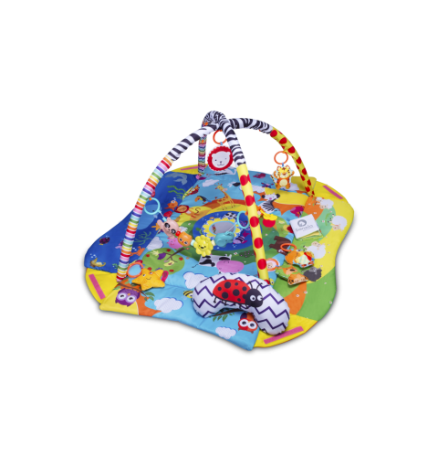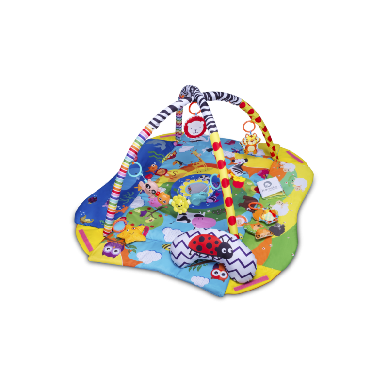 Zestaw: 2 pałąki, 5 interaktywnych zabawek, gryzak, bezpieczne lusterko, poduszka tummy time, sznur z grzechotkami