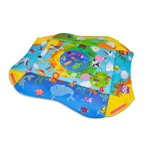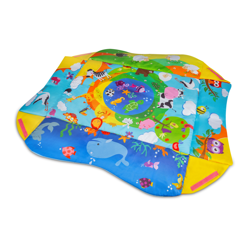 2w1: mata i kojec - dzięki podnoszonym bokom i rzepom umieszczonym na rogach matę można w kilka sekund zmienić w wygodny kojec, który posłuży jako centrum zabaw maluszka w ciągu dnia.