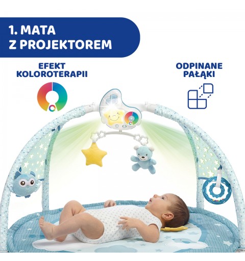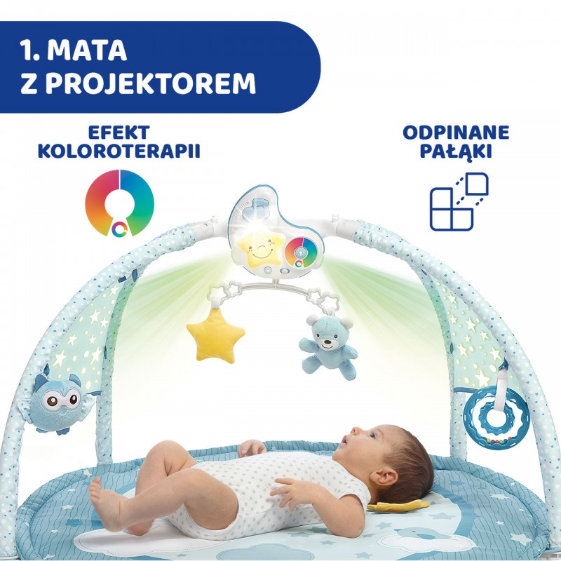 Elektroniczna mata z projekcjami i melodiami – do zabawy w pozycji na plecach;