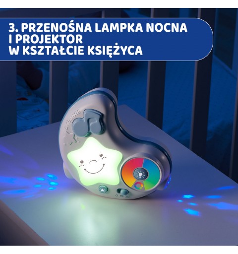 Projektor to doskonałe urządzenie dla rodziców, którzy pragną oświetlić dziecięcy pokój delikatnym światłem sprzyjającym stworzeniu spokojnej atmosfery przed zaśnięciem maluszka. Emitowane światło tworząc efekt koloroterapii, sprawi, że dziecko będzie czuło się zrelaksowane i bezpieczne w swoim pokoiku, a spokojne melodie odtwarzane przez urządzenie ukołyszą je do snu.