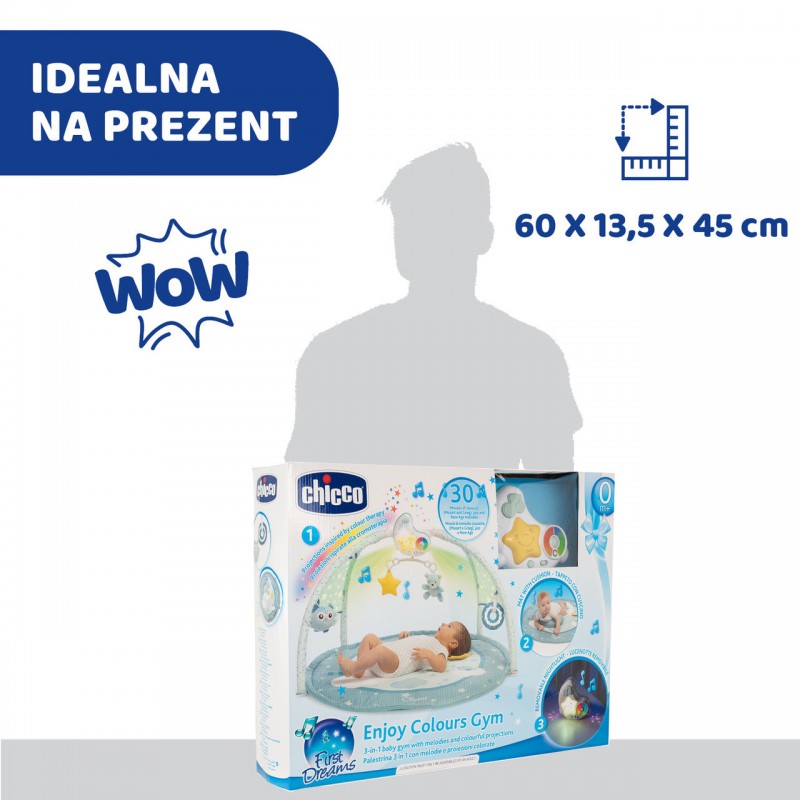 Innowacyjna Mata dla niemowlaka 3w1 Enjoy Colors z melodiami i kolorowymi projekcjami jest idealna do zabawy i odpoczynku każdego dnia. Mata dzięki wielu funkcjom i modułowej budowie odpowiada na różne potrzeby rodziców… i oczywiście dzieci. Idealnie dopełnia wystrój i atmosferę domu czy pokoiku dziecięcego, czyniąc go przytulniejszym. To również znakomity pomysł na prezent!