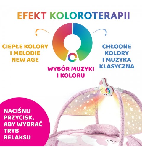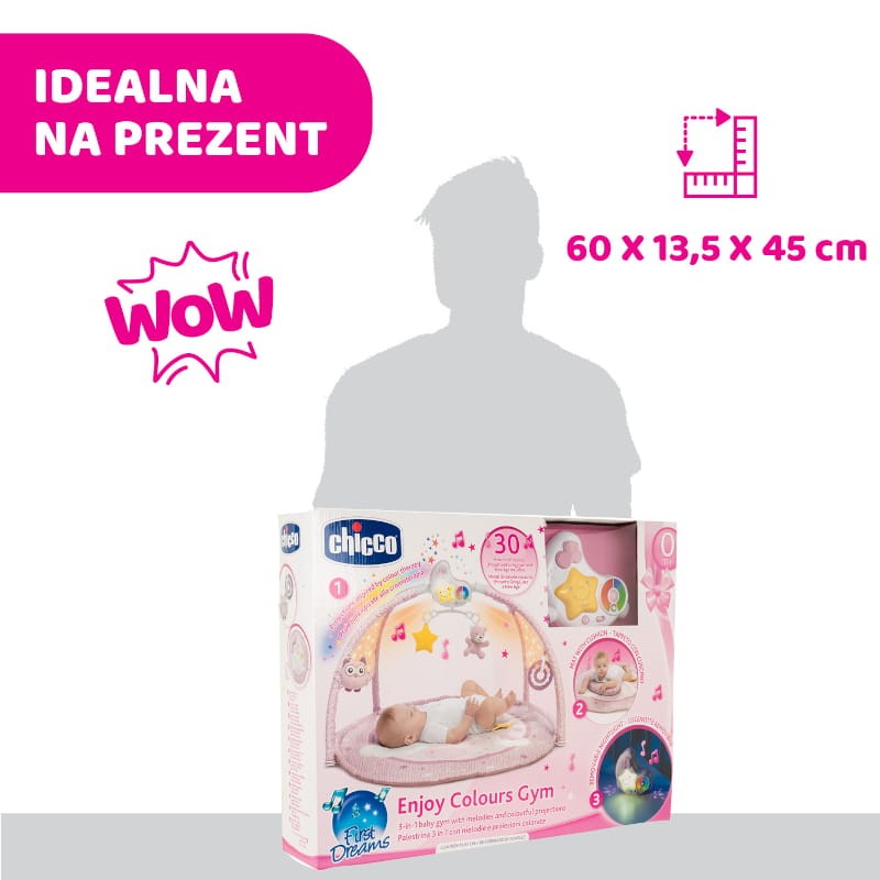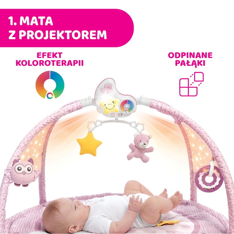Innowacyjna Mata dla niemowlaka 3w1 Enjoy Colors z melodiami i kolorowymi projekcjami jest idealna do zabawy i odpoczynku każdego dnia. Mata dzięki wielu funkcjom i modułowej budowie odpowiada na różne potrzeby rodziców… i oczywiście dzieci. Idealnie dopełnia wystrój i atmosferę domu czy pokoiku dziecięcego, czyniąc go przytulniejszym. To również znakomity pomysł na prezent!