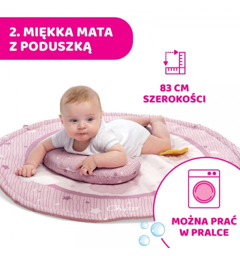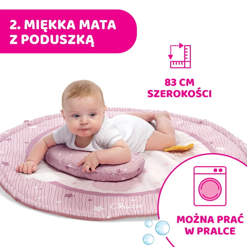 Okrągła mata o średnicy 83 cm z poduszką do podparcia – do zabawy w pozycji na brzuchu;