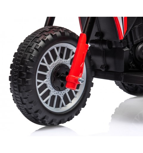 Po przełączeniu włącznika rozlega się brzmienie uruchamianego silnika a wraz z naciśnięciem pedału gazu motocykl rusza. Duże koła z terenowym bieżnikiem zapewnią mobilność podczas wypraw poza domem a wyprofilowane siedzisko – odpowiedni komfort i bezpieczeństwo najmłodszych użytkowników. Natomiast, stalowe osie kółek gwarantują stabilność i trwałość pojazdu. W wyposażeniu znajduje się również klakson, który sprawi, że zabawa będzie jeszcze ciekawsza!