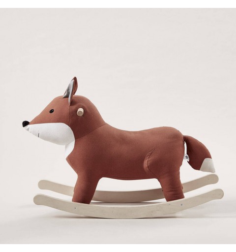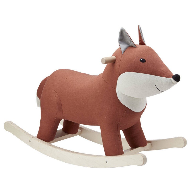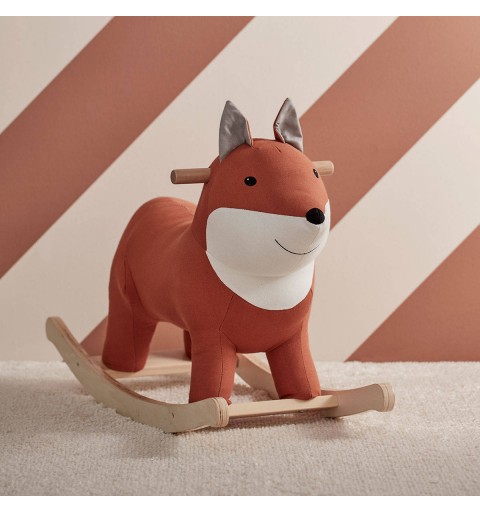 Uroczy czerwono-biały lisek na biegunach to świetna zabawka i element dekoracyjny pokoju dziecka.