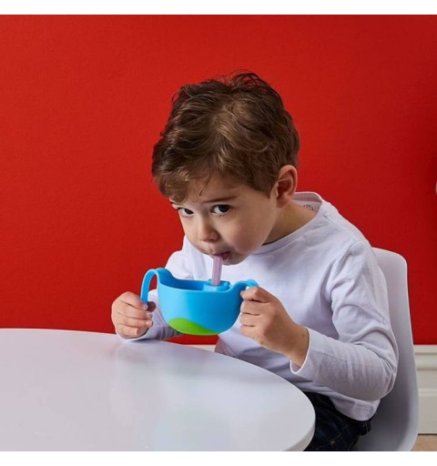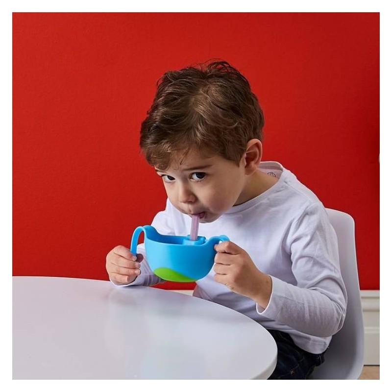 Wyjątkowy i jedyny w swoim rodzaju miseczka o opatentowanej konstrukcji przeznaczona dla dzieci powyżej 12 miesiąca życia. Duże uchwyty zapewniają stabilność i większą niezależność. Unikalna miseczka ze słomką sprawia, iż dziecku łatwiej spożywać posiłki o konsystencji półpłynnej oraz płynnej. Tym samym jedzenie zupki czy płatków z mlekiem jest dla dziecka dużo zabawniejsze i pozwala mu rozpocząć naukę samodzielnego jedzenia. Miseczka dodatkowo wyposażona jest w przykrywkę. Unikatowy kształt pozwala dziecku w wygodny sposób pić bezpośrednio z miseczki.