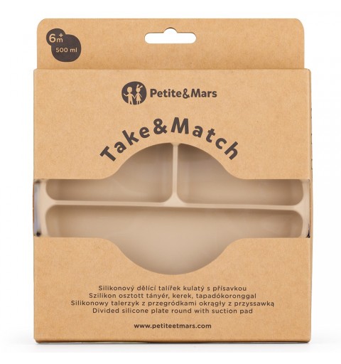 Petite& Mars Take&Match - silikonowy talerzyk z przegródkami okragły 6m+ | Desert Sand