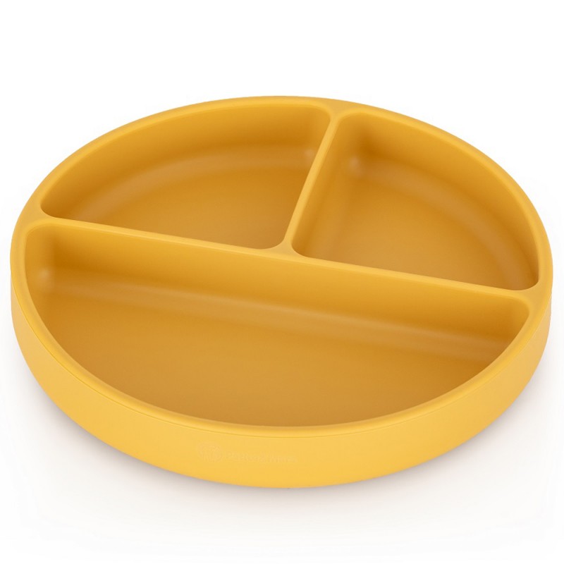 Praktyczny talerzyk został wykonany w całości z silikonu spożywczego bez BPA. Dzięki temu może być bezpiecznie używany do wszelkich pokarmów, zarówno ciepłych, jak i zimnych, a jedzenie można w nim bez obaw podgrzać w mikrofalówce czy przechować w lodówce. Trwały a zarazem miękki silikon sprawia, że nie trzeba się martwić o to, że talerzyk się rozbije, wyszczerbi czy odkształci – niezniszczony może być używany przez długi czas. Przeznaczony jest dla małych dzieci od 6 miesiąca życia, którym wprowadza się rozszerzoną dietę oraz takich które z powodzeniem uczą się już samodzielnego jedzenia. Talerzyk wyposażony jest w trzy trwałe przegrody, które pozwalają na podzielenie potraw na trzy oddzielne części. Tym sposobem konsystencje i kształty nie mieszają się na talerzu, co umożliwia łatwiejsze i bardziej estetyczne spożywanie pokarmów przez dziecko. Dodatkowym ułatwieniem dla małego użytkownika są zaokrąglone kształty.