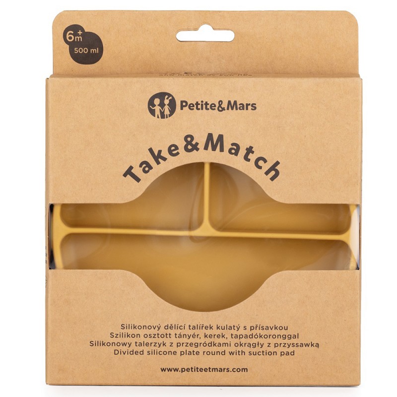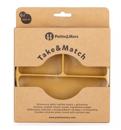 Petite& Mars Take&Match - silikonowy talerzyk z przegródkami okragły 6m+ | Intense Ochre