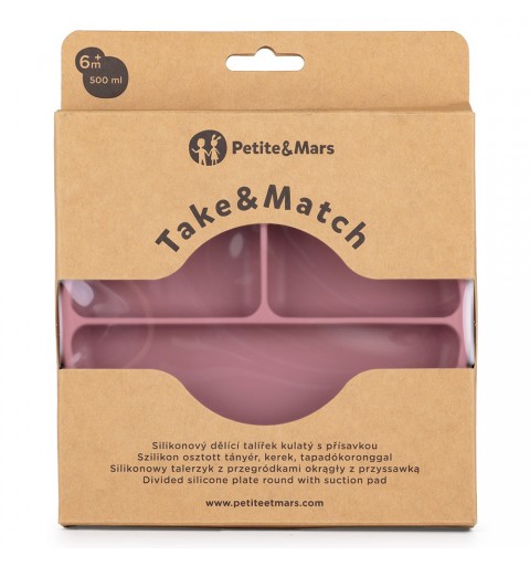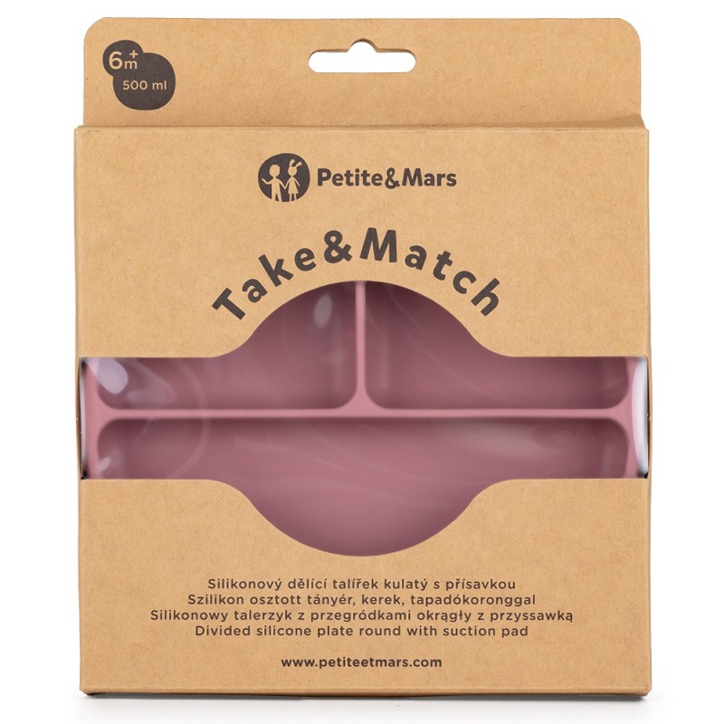 Petite& Mars Take&Match - silikonowy talerzyk z przegródkami okragły 6m+ | Dusty Rose