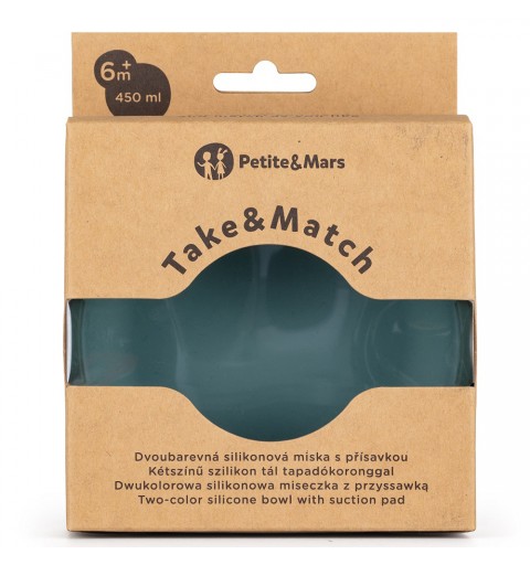 Petite& Mars Take&Match - dwukolorowy silikonowy talerzyk 6m+ | Misty Green