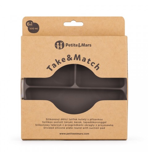 Petite& Mars Take&Match - silikonowy talerzyk z przegródkami okragły 6m+ | Bitter Cocoa