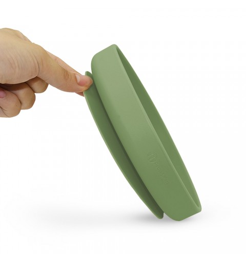 Praktyczny talerzyk został wykonany w całości z silikonu spożywczego bez BPA. Dzięki temu może być bezpiecznie używany do wszelkich pokarmów, zarówno ciepłych, jak i zimnych, a jedzenie można w nim bez obaw podgrzać w mikrofalówce czy przechować w lodówce. Trwały a zarazem miękki silikon sprawia, że nie trzeba się martwić o to, że talerzyk się rozbije, wyszczerbi czy odkształci – niezniszczony może być używany przez długi czas. Przeznaczony jest dla małych dzieci od 6 miesiąca życia, którym wprowadza się rozszerzoną dietę oraz takich które z powodzeniem uczą się już samodzielnego jedzenia. Zaokrąglone kształty naczynia ułatwiają małemu dziecku spożywanie pokarmu. Dla wygody dziecka, jak i rodziców, talerzyk ma przyssawkę, która przylega do powierzchni stołu lub krzesełka dziecięcego. Warunkiem działania przyssawki jest czysta powierzchnia blatu.