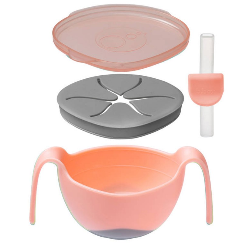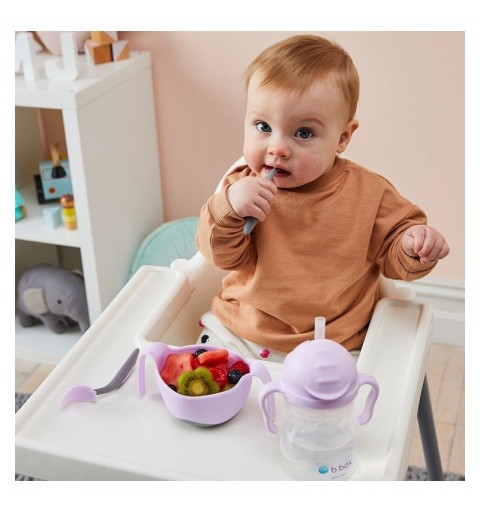 Praktyczne i innowacyjne rozwiązanie ułatwiające dziecku samodzielne spożywanie posiłków także tych o płynnej lub półpłynnej konsystencji. Poręczna miseczka z uchwytami posiada opatentowaną słomkę a także wkładkę zamieniającą ją w kubek niewysypek. Dodatkowo zawartość można zabezpieczyć pokrywka będącą elementem zestawu.