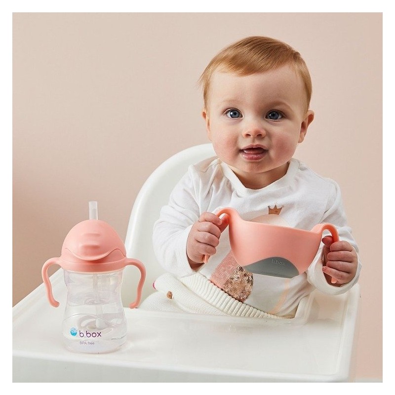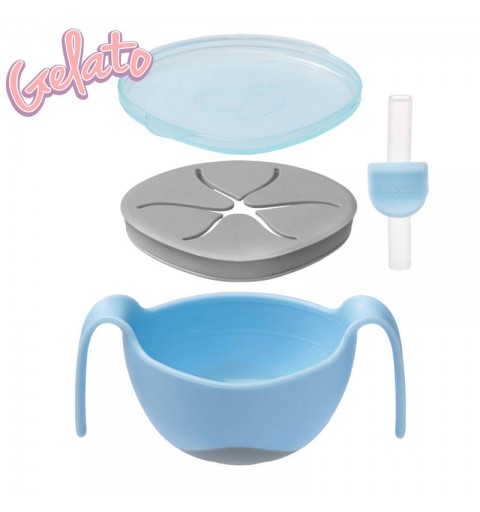 Praktyczne i innowacyjne rozwiązanie ułatwiające dziecku samodzielne spożywanie posiłków także tych o płynnej lub półpłynnej konsystencji. Poręczna miseczka z uchwytami posiada opatentowaną słomkę a także wkładkę zamieniającą ją w kubek niewysypek. Dodatkowo zawartość można zabezpieczyć pokrywka będącą elementem zestawu.