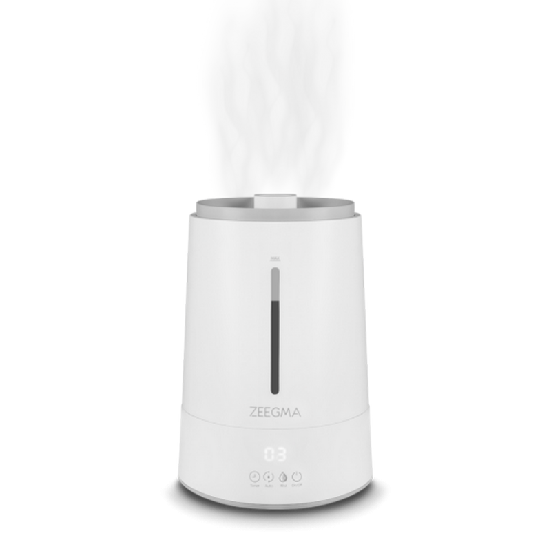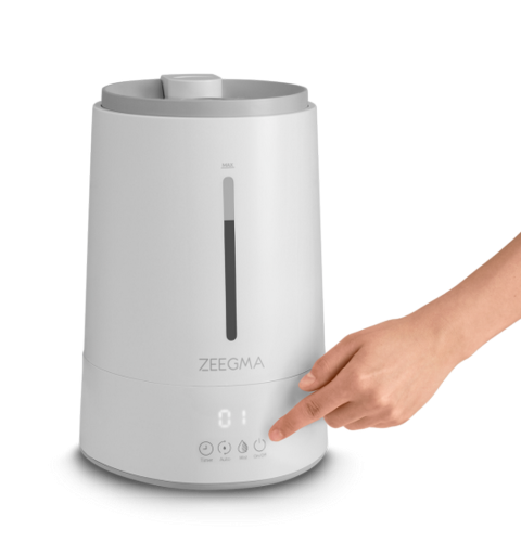 4-stopniowa regulacja poziomu nawilżania pozwala dostosować ilość wydzielanej mgiełki do twoich potrzeb. Możesz wybrać opcje: low, mid, high lub auto. Wbudowany higrometr i funkcja auto sprawdza wartość wilgotności powietrza. W przypadku gdy ta spadnie poniżej określonego poziomu, nawilżacz Zeegma Vers Ioni samoczynnie wznowi działanie.