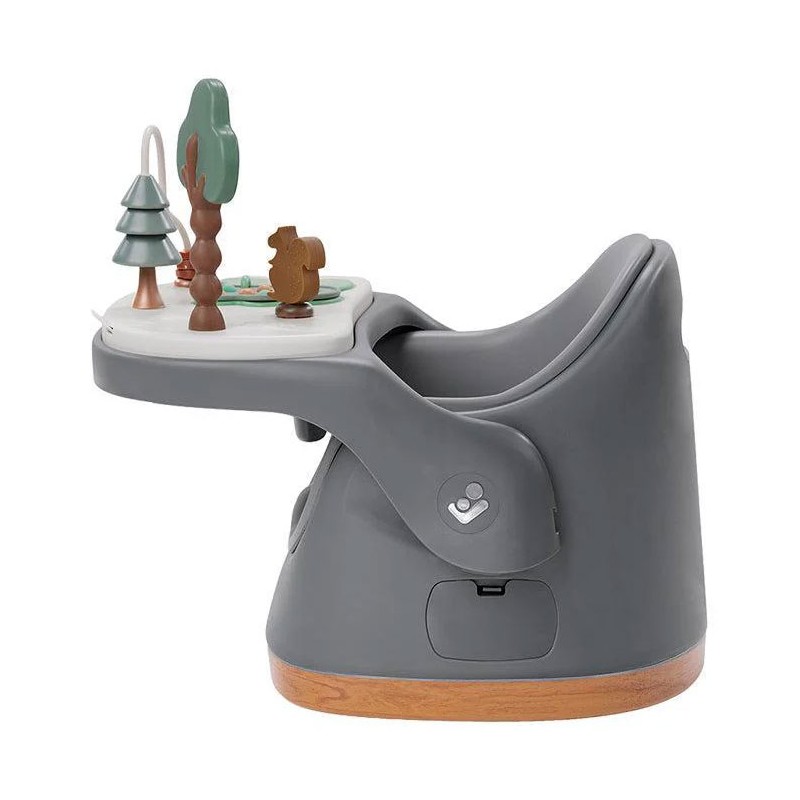 Jay Plus zmienia się z fotelika do karmienia w siedzisko podłogowe, jest wyposażony w tackę edukacyjną - wszystko, czego potrzebuje Twoje dziecko, aby rozwinąć swoje umiejętności motoryczne.