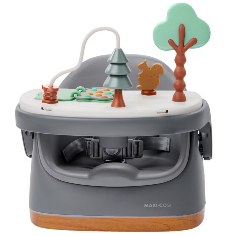 Zapewnij swojemu maluszkowi wygodę podczas jedzenia, zabawy i siedzenia od 6 miesięcy do 3 lat. Wkładkę można wyjąć, aby zyskać więcej miejsca, gdy dziecko urośnie. Wysokość podstawki podwyższającej do karmienia, a także położenie tacki, są regulowane, aby zapewnić idealne dopasowanie, gdy dziecko staje się coraz większe.