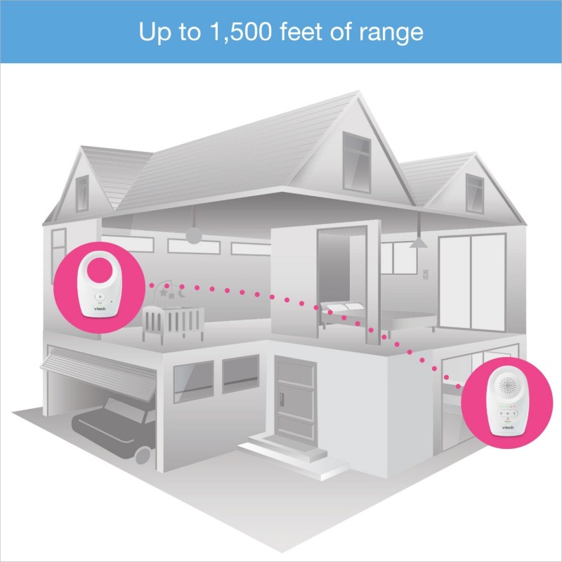 Vtech DM1111 to cyfrowa niania eletroniczna, która ma zwiększony zasięg do 460m dzięki czemu możesz spokojnie zajmować się obowiązkami i wypoczynkiem w domu czy na ogrodzie.