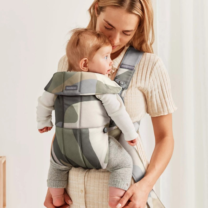 Nosidełko BabyBjorn Mini jest małe i łatwe w użyciu. Szczególnie przydatne w pierwszych miesiącach życia, kiedy dziecko bardzo potrzebuje być blisko Ciebie, więc często musisz je przez chwilę ponosić. By odłożyć śpiące dziecko, nie budząc go, wystarczy odpiąć całą przednią część nosidełka. Mięciutkie tkaniny delikatnie otulają i wspierają plecki, nóżki i bioderka malucha. Przez materiał możesz kontrolować ułożenie noworodka i naturalne wygięcie jego kręgosłupa w kształcie litery C.