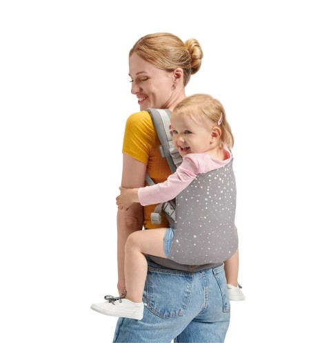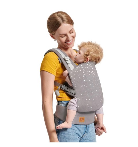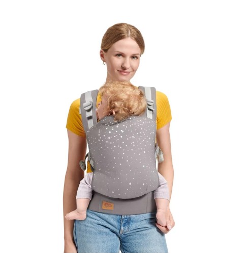NINO zapewnia 2 pozycje noszenia - na brzuchu i na plecach (dla dzieci, które już samodzielnie siedzą). Innowacyjny skracany panel oraz regulowane pasy umożliwiają idealne dopasowanie do dziecka oraz rodzica. Maluszek będzie szczelnie otulony materiałem, co zapewni mu poczucie bezpieczeństwa, a także bliskość rodzica. Stylowy design z nowej kolekcji Confetti nadaje nosidełku nietuzinkowego wyglądu.