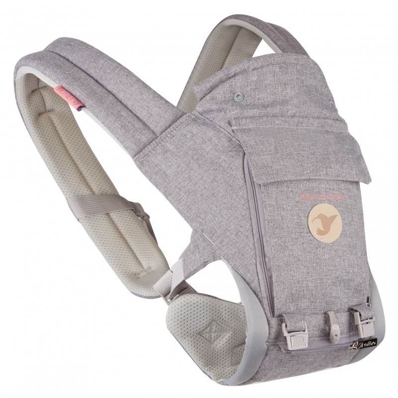 płaszczyzna siodełka biodrowego wykonana jest ze specjalnej gumowanej antypoślizgowej tkaniny. Dodatkowo pozycja siodełka jest tak wyprofilowana, żeby zawsze było skierowane lekko ku górze zapewniając większą wygodę (przy prawidłowym zapięciu nosidełka i pasa biodrowego)
