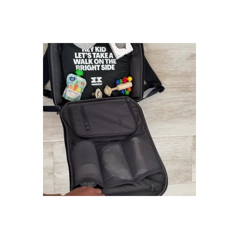 W plecaku Minimeis znajdziesz specjalnie zaprojektowane kieszenie na butelki z wodą, koktajle lub wszystko to, czego może potrzebować Twoje dziecko, aby było nawodnione i w pełni sił.
