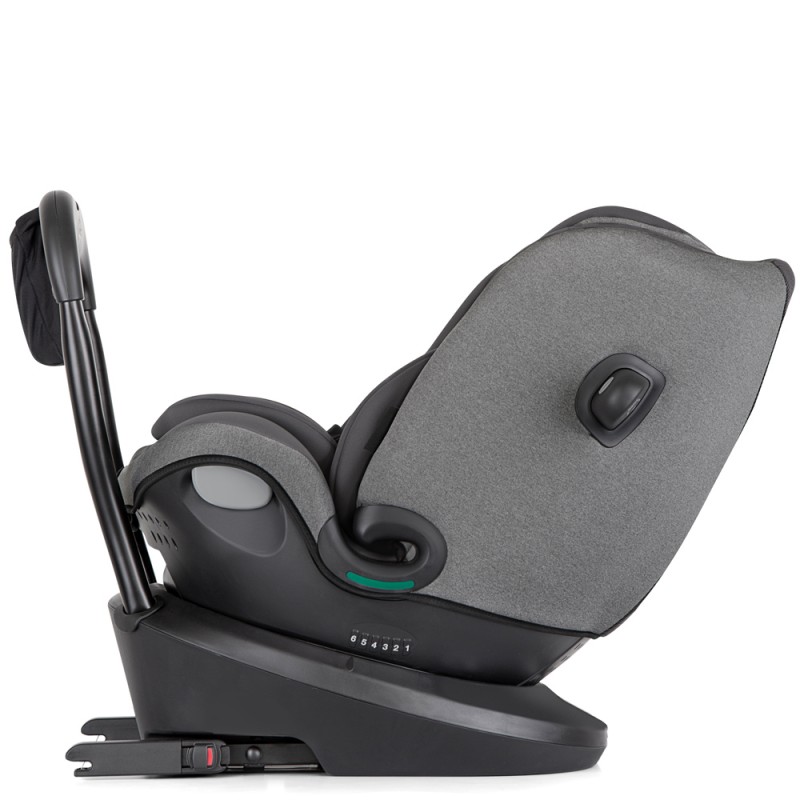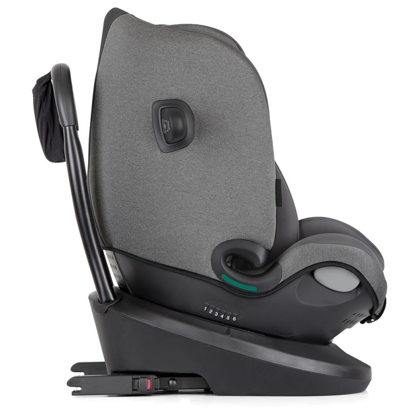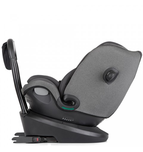 Możliwość obrotu siedziska o 360 stopni jedną ręką dla ułatwienia podróżowania. Odpowiedni tyłem do kierunku jazdy do 105 cm i 18,5 kg, montaż za pomocą złączy Isofix i pasa Top Tether.