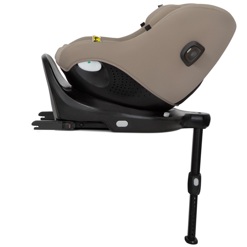 Bezpieczny fotelik samochodowy i-Size z funkcją obrotu siedziska o 360º, która ułatwia przewożenie dziecka tyłem i przodem do kierunku jazdy.
