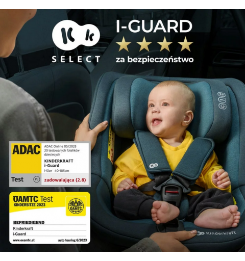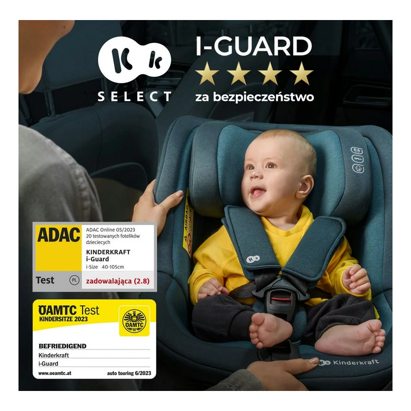 Oto I-GUARD PRO - fotelik samochodowy dla dzieci od 3 miesięcy do około 4 lat (61-105 cm), zgodny z normą R129 i-Size. Został przetestowany przez ADAC (ADAC Online 05/2023) i otrzymał ocenę 2.0 za bezpieczeństwo, która jest równoznaczna z 4 gwiazdkami. By spełniać najwyższe standardy bezpieczeństwa przetestowano go w prędkości aż 64 km/h, podczas gdy norma wymaga testowania fotelików pod kątem zderzenia frontowego w prędkości 50 km/h. Pozytywne wyniki potwierdziły, że I-GUARD PRO zmniejsza siły uderzenia czołowego na głowę i klatkę piersiową aż o 20%!