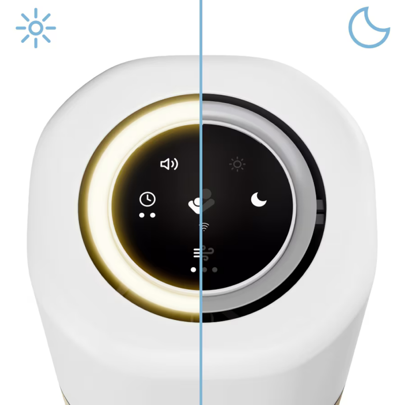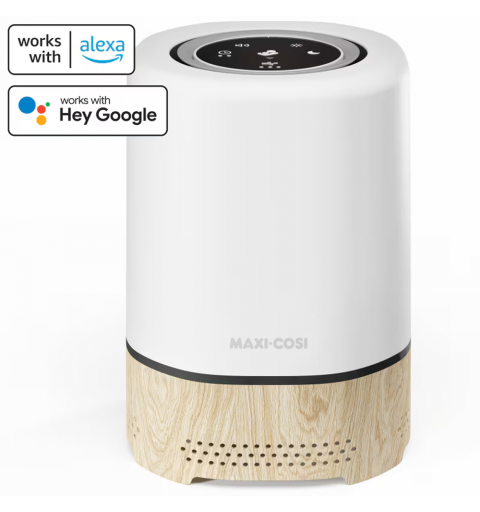 Poza funkcją filtrowania powietrza oczyszczacz powietrza Maxi-Cosi Clean ma także lampkę nocną i głośnik odtwarzający 4 kojące dźwięki, które pomogą maluszkowi spokojnie zasnąć.