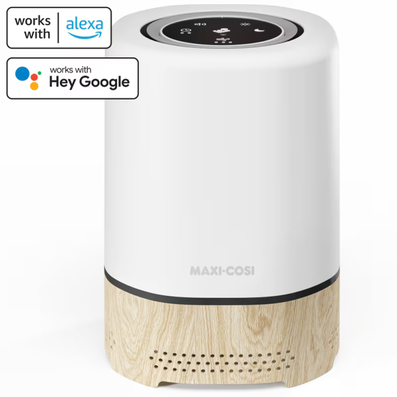 Oczyszczacz Maxi-Cosi Clean z filtrami HEPA 13 usuwa 99,97% widocznego kurzu, alergenów i cząstek unoszących się w powietrzu w pokoju dziecka.