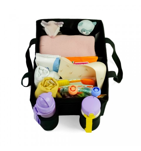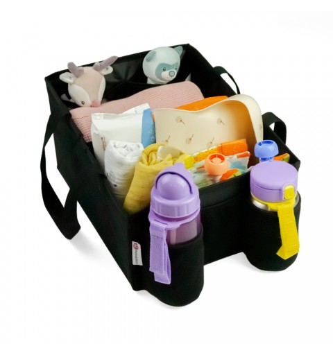 Czy lubisz porządek w domu i samochodzie? Podróżowanie z małym dzieckiem może być sporym wyzwaniem, a utrzymanie samochodu w czystości może wydawać się niemożliwe. Ale nie z tym praktycznym organizerem samochodowym. Wystarczy przyczepić organizer do tylnej kanapy samochodu i przymocować je pasem bezpieczeństwa. Organizer idealnie zmieści się nawet między 2 foteliki dziecięce. Można go również używać w bagażniku samochodu lub do przenoszenia rzeczy z domu do samochodu i na odwrót. Składanie i rozkładanie jest bardzo proste. Przestronne wnętrze z przegródkami i kieszonkami z siatki pozwoli Ci na przejrzyste uporządkowanie rzeczy i oczyszczenie przestrzeni w samochodzie w bardzo krótkim czasie. Organizer ma również dwie kieszenie na butelki. Możesz użyć tego organizera do przechowywania zabawek, jedzenia, pieluszek, ręczników – jednym słowem wszystkiego,czego potrzebujesz.