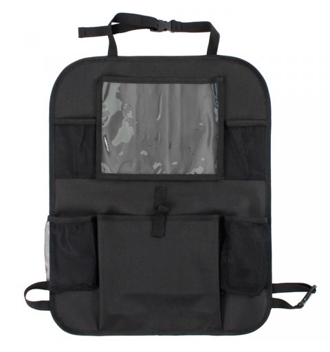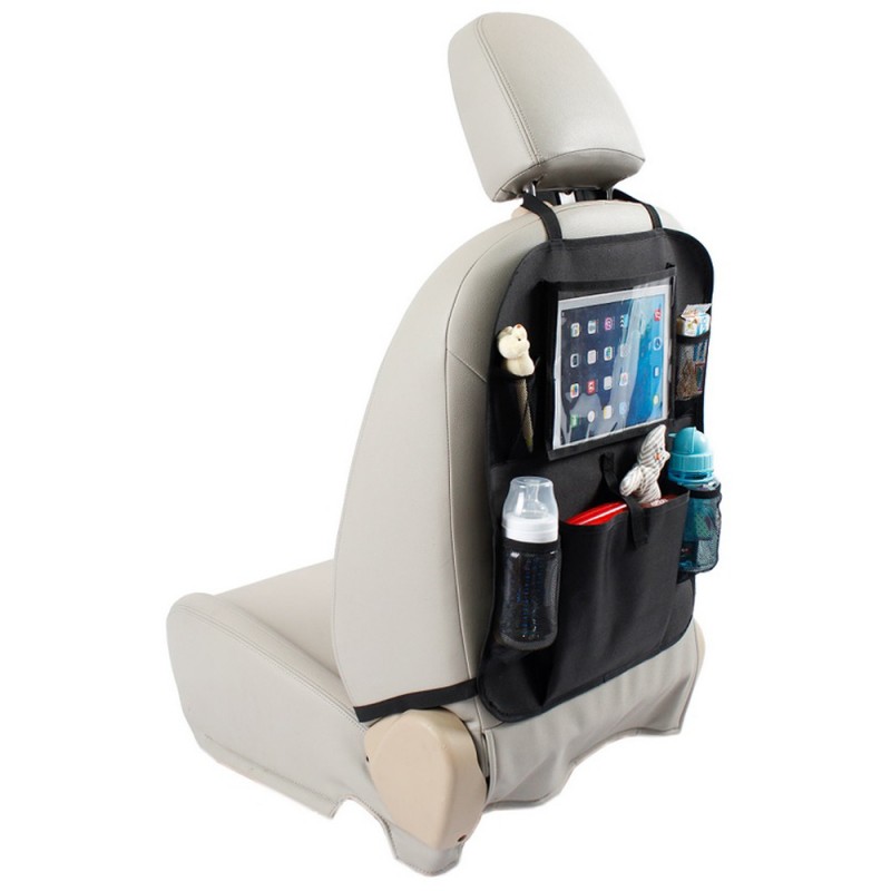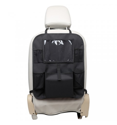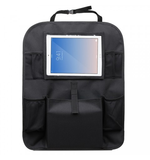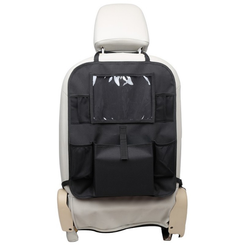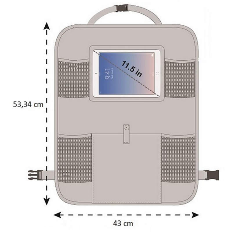 Organizer na tylne siedzenie samochodu idealnie sprawdzi się zarówno podczas długich, jak i krótkich podróży. Podróżowanie z małym dzieckiem może być czasem trudne. Podczas długiej jazdy samochodem dziecko trzeba zabawiać, a już po krótkim czasie wszędzie panuje bałagan. Dzięki organizerowi z kieszenią na tablet, podróż będzie dla Ciebie łatwiejsza. Przezroczysta kieszeń na tablet chroni ekran dotykowy i zapewnia doskonały obraz. Nadaje się do tabletów do 11,5 ''. Dzięki uniwersalnemu mocowaniu do fotela pasuje do prawie każdego samochodu. Oprócz kieszeni na tablet, organizer zawiera 4 kieszenie z siatki oraz szeroką kieszeń środkową. Dolne kieszenie przeznaczone są na butelki, górne mniejsze kieszenie na różne drobne przedmioty. W środkowej kieszeni zmieści się kilka zabawek lub innych przedmiotów. Z organizerem Tablet nareszcie możesz cieszyć się spokojną jazdą.