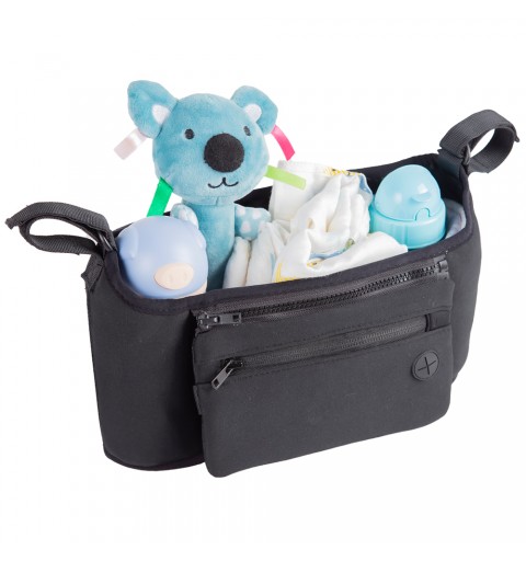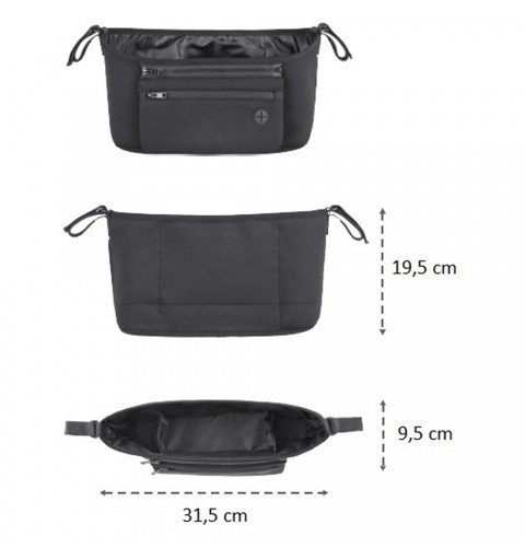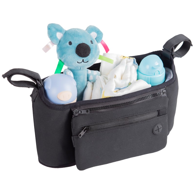 Organizer do wózka to nieoceniona pomoc dla każdej mamy. Za pomocą rzepów można go łatwo przymocować do każdego rodzaju wózka. Dwie boczne przegródki pomieszczą butelkę, termos lub kubek z kawą. W dużej środkowej komorze z łatwością zmieścisz wszystko, czego potrzebujesz podczas spaceru lub wycieczki. Możesz również użyć odpinanej przedniej kieszeni. Nadaje się ona do przechowywania telefonu komórkowego, a także zawiera gniazdo słuchawkowe, dzięki czemu możesz słuchać ulubionej muzyki lub prowadzić rozmowy telefoniczne podczas spaceru. A jeśli zatrzymasz się na placu zabaw, możesz po prostu odpiąć kieszeń na telefon komórkowy i inne cenne przedmioty i zabierać ją ze sobą. Organizer Pocket zip uporządkuje niezbędne podczas spaceru akcesoria i sprawi, że będziesz mieć wszystko pod ręką. Nie potrzebujesz też brać dodatkowej torebki!