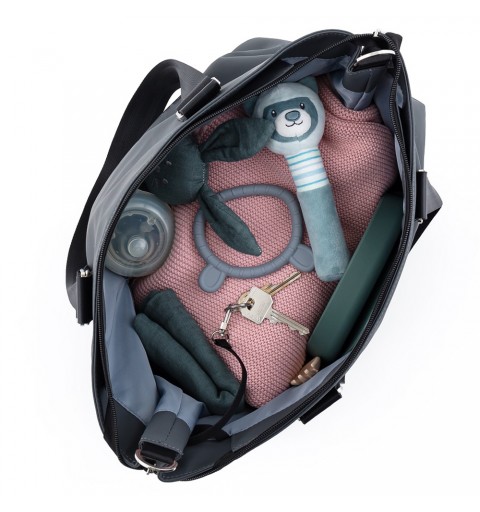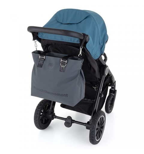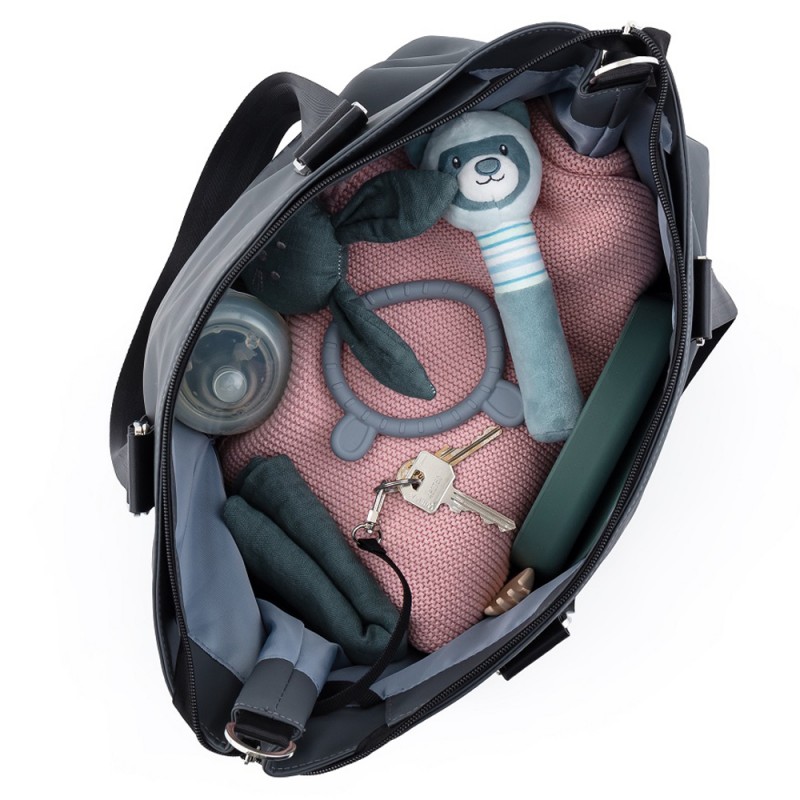 Ta lekka i organizacyjnie przemyślana torba wykonana jest z wysokiej jakości materiałów, odpornych na działanie wilgoci. Posiada boczne paski do mocowania na wózku, a główna komora zapinana jest na dwusuwakowy zamek. Duża ilość kieszeni, w tym funkcyjne sprawią, że pakowanie się w podróż czy na spacer stanie się o wiele łatwiejsze. Torba posiada termo-kieszeń, kieszonkę na wilgotne rzeczy, kieszenie przeznaczone na butelki oraz smycz na klucze. W zestawie znajduje się mata do przewijania. Waga torby bez produktów w środku nie przekracza kilograma.