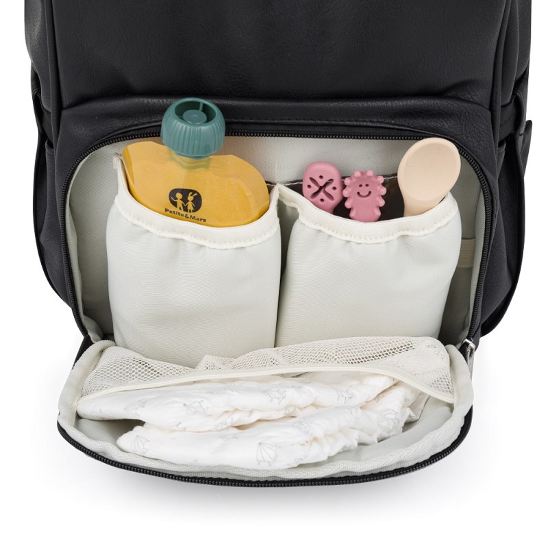 Plecak waży mniej niż kilogram, jest wykonany z wysokiej jakości, wodoodpornego materiału PU, zapewniającego stabilność i długowieczność. Boczne odpinane pasy umożliwiają łatwe mocowanie plecaka do wózka dowolnej marki. Paski na ramiona z dodatkową warstwą z pianki gwarantują wygodę nawet podczas długiego noszenia, a jasna podszewka wewnątrz ułatwia szybkie znalezienie potrzebnych rzeczy i utrzymanie porządku.