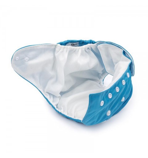 Duża część rodziców decyduje się obecnie na wielorazowe pieluchy materiałowe, kierując się względami ekologicznymi, kosztami, czy też po prostu komfortem i stylem. Nowoczesna mama ma teraz nie tylko zdrowy i ekologiczny wybór, ale przy okazji może zadbać o swoją kieszeń. Dzięki czterem rzędom zatrzasków rozmiar pieluch można dostosować do potrzeb rosnącego dziecka. Miękki materiał zewnętrzny jest szczelny i oddychający, nie pozwala wydostać się zawartości pieluszki na zewnątrz. Wewnętrzna część wykonana jest z siateczki. Po odpięciu pieluszki można rozłożyć ją na płasko, co ułatwia założenie wkładu chłonnego oraz umożliwia wygodne przewinięcie malucha.