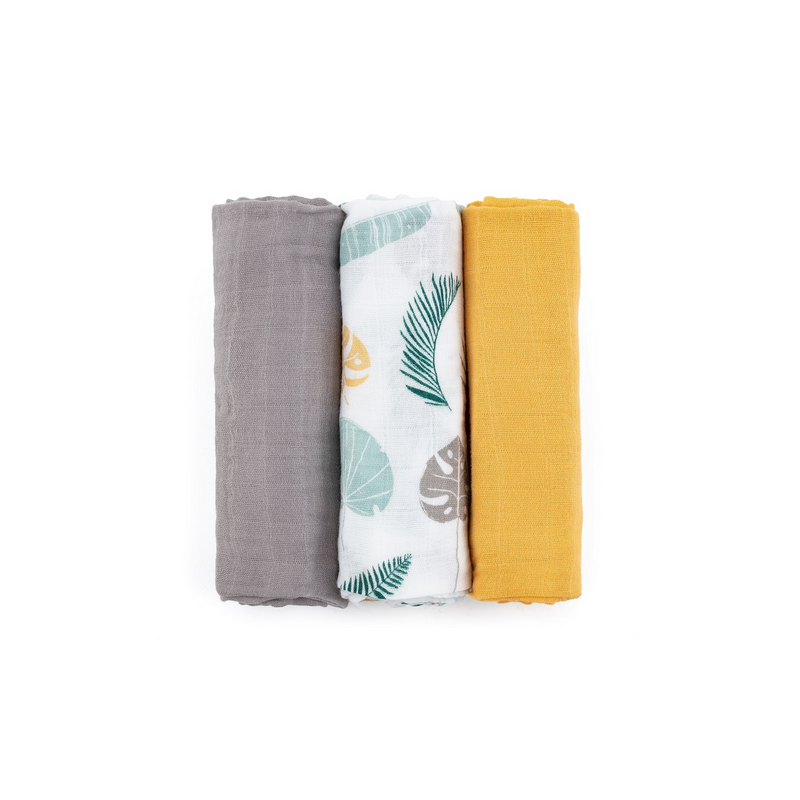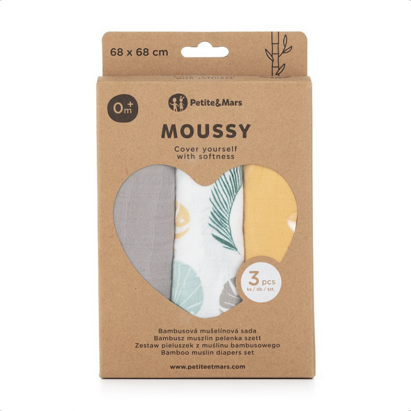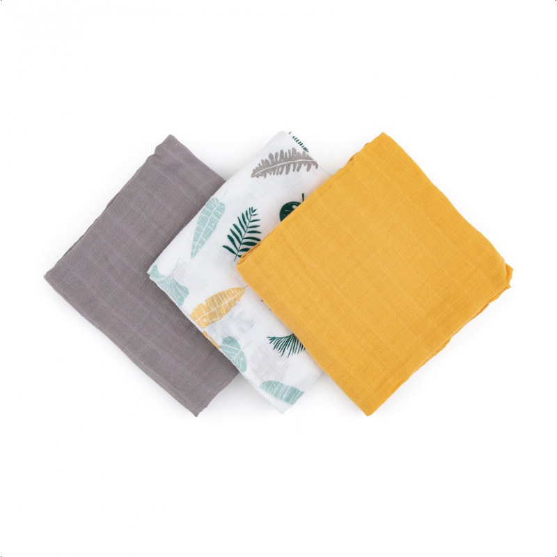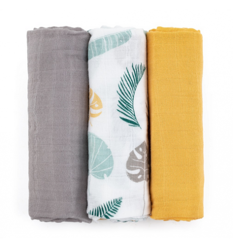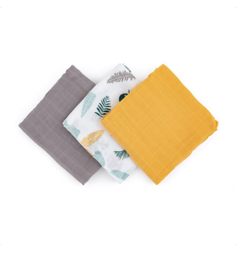 Petite&Mars Moussy - 3 pieluchy bambusowe 68x68 | Ochre Leaves