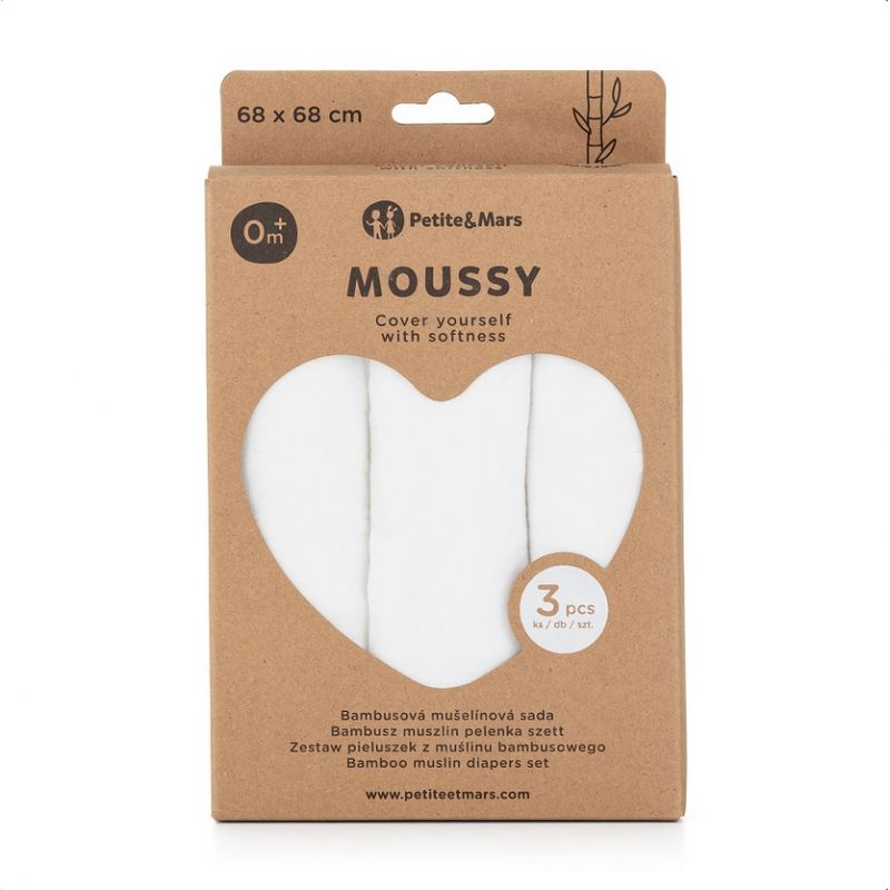Petite&Mars Moussy - 3 pieluchy bambusowe 68x68 | Total White