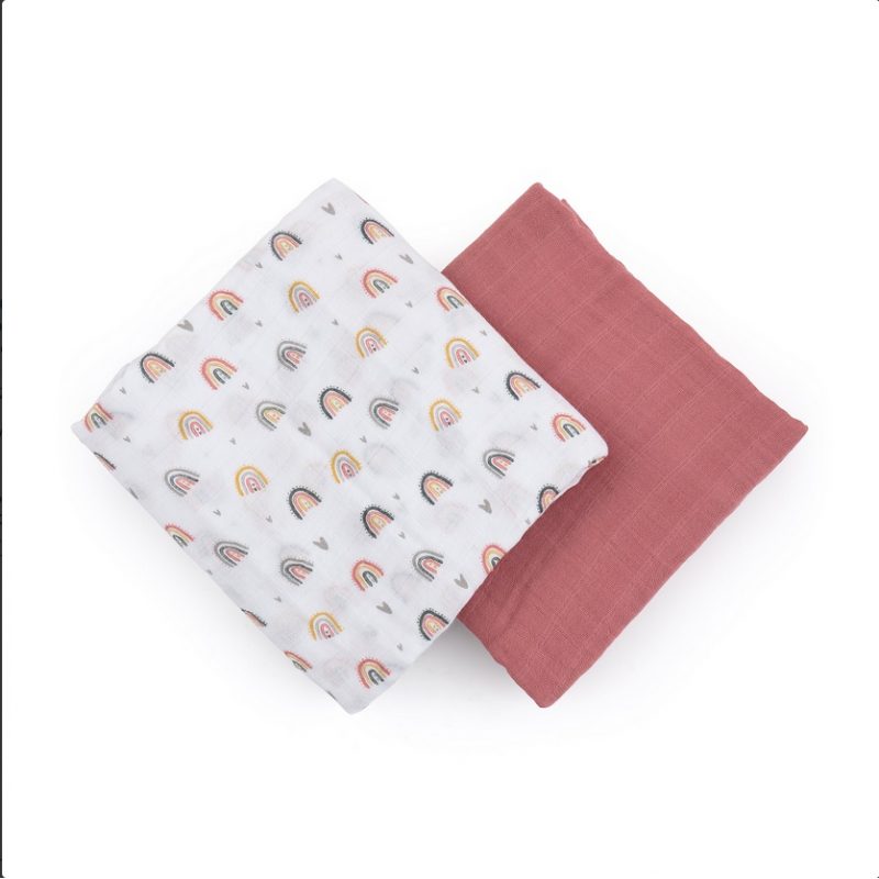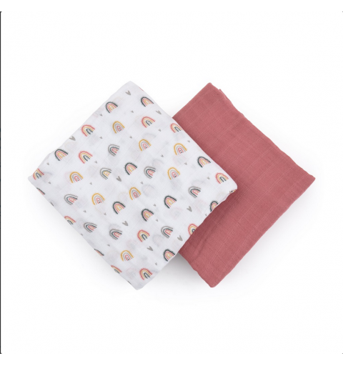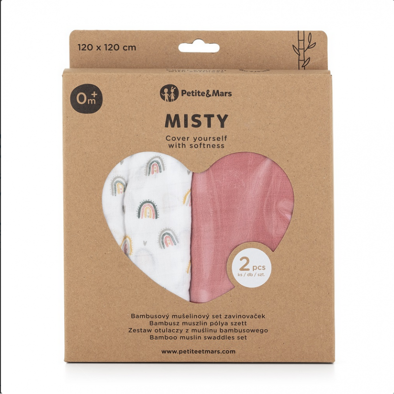 Petite&Mars Misty - 2 otulacze muślin bambusowy 120x120 | Rose Rainbow