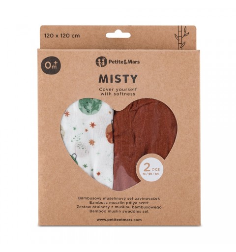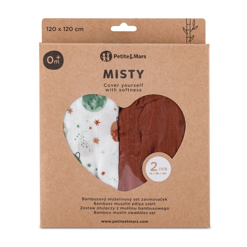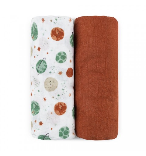 Petite&Mars Misty - 2 otulacze muślin bambusowy 120x120 | Celestial Planets