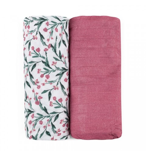 Petite&Mars Misty - 2 otulacze muślin bambusowy 120x120 | Pink Meadow