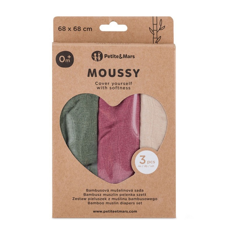 Petite&Mars Moussy - 3 pieluchy bambusowe 68x68 | Botanic Tones