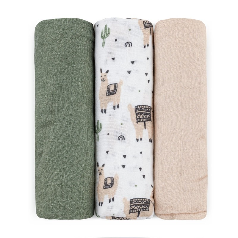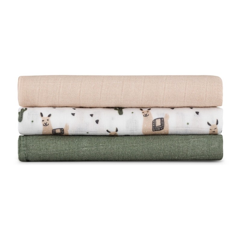 Petite&Mars Moussy - 3 pieluchy bambusowe 68x68 | Llama Vibes