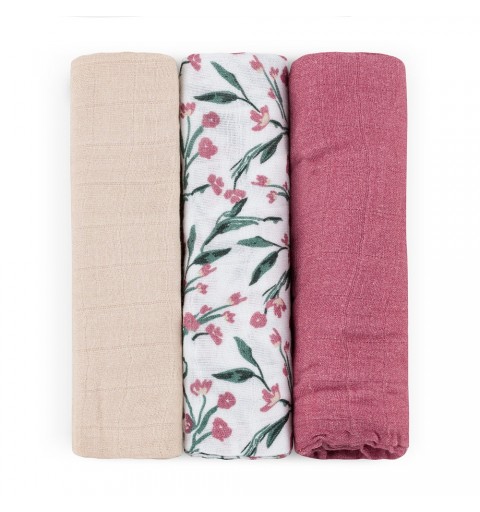 Petite&Mars Moussy - 3 pieluchy bambusowe 68x68 | Pink Meadow