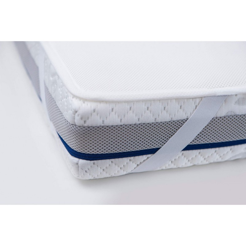 Wilgoć przechodząc przez prześcieradło i siateczkę 3D zatrzyma się i zwiąże na wodoodpornym laminacie – drugiej z warstw ochraniacza. Ochroni on cenny wkład materaca przed wilgocią oraz rozwojem drobnoustrojów, a skóra dziecka nie odczuje dyskomfortu.