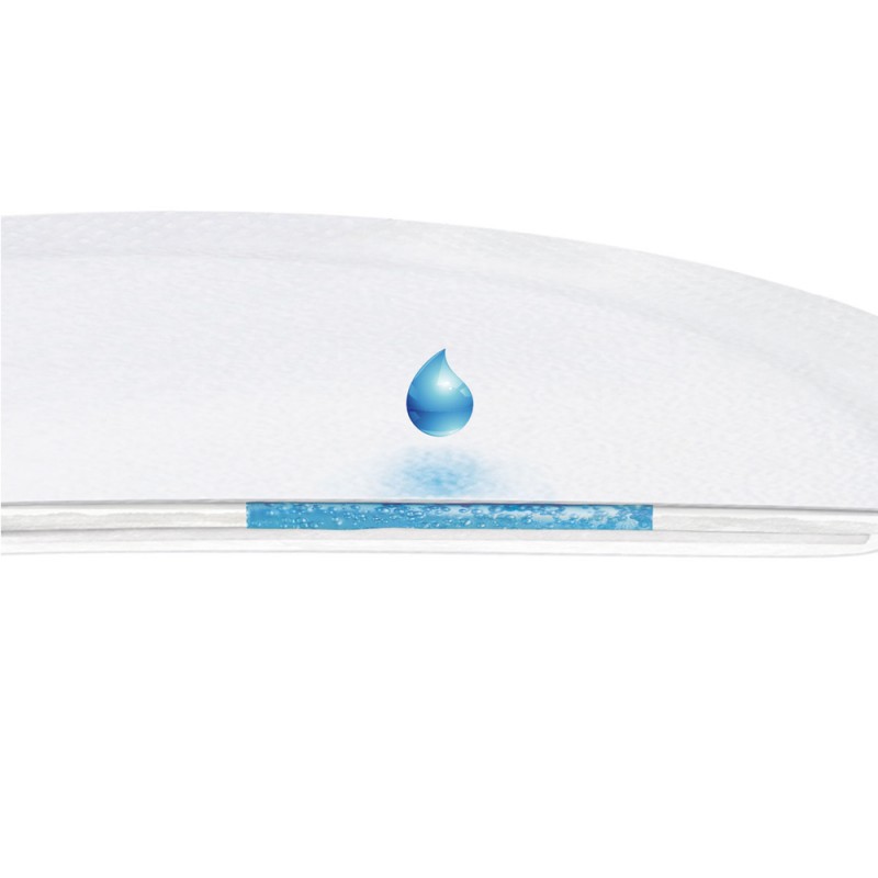 Superchłonne podkłady poporodowe dla kobiet w czasie połogu. Miękka, całkowicie oddychająca naturalna powłoka zewnętrzna nie rozwarstwia się i nie przywiera do skóry. Szeroki pasek samoprzylepny utrzymuje podkład na właściwym miejscu. Wyprofilowany kształt zapewnia komfort podczas noszenia i ochronę przed zabrudzeniem. Cienka struktura zapewnia dyskrecję noszenia. Wkład żelujący szybko pochłania i zatrzymuje wilgoć wewnątrz podkładu. W opakowaniu 10 sztuk.
