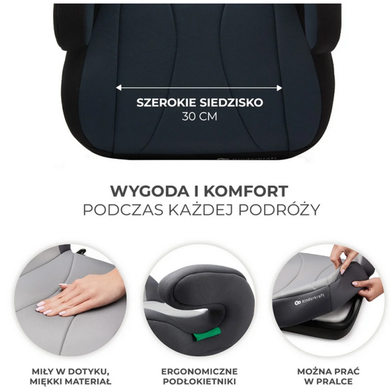Podstawka I-BOOST i-Size ma wygodne podłokietniki, które zapewniają komfort podczas jazdy i ergonomiczną postawę. Podstawka jest też szeroka i głęboka, dzięki czemu będzie w niej wygodnie nawet większym dzieciom. Ma też dodatkową warstwę miękkiej pianki w siedzisku.
