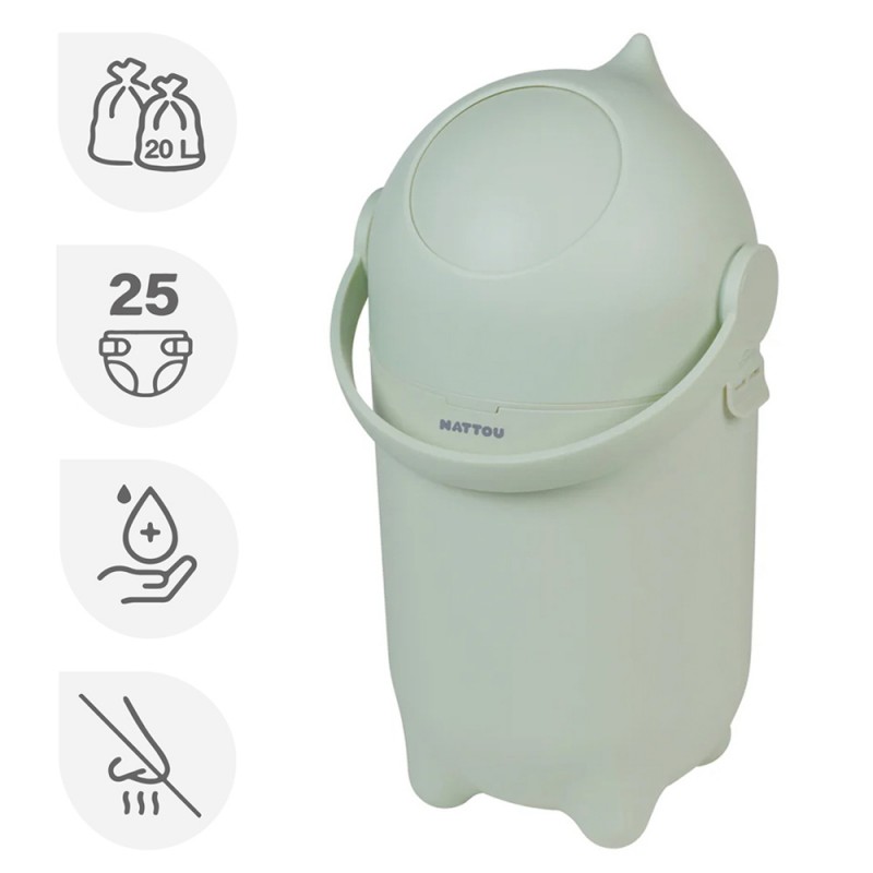 Nattou Dropy - kosz na pieluchy 20l | Zielony